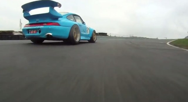 O 911 que vai na frente é um mítico GT2, representante da belíssima geração 993. Não sabemos o set up específico desse exemplar, mas o modelo traz o motor biturbo com 3,6 litros e 450 cv. Aqui na Garagem conhecemos dois exemplares com o kit de carroceria, sendo um prateado e outro amarelo.