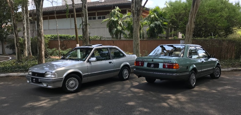 Do lado de fora mais discrição. Essa versão traz as rodas de 13 polegadas. Além disso vale reparar na tonalidade da carroceria, muito elegante, com destaque para os para-choques na cor marrom, algo bastante singular e que chama a atenção. Rodando ambos têm comportamentos distintos, apesar de serem equipados com o mesmo motor de 1,8 litro. O Ford é mais voltado para o conforto, enquanto o Volkswagen traz câmbio com relações mais curtas e um desempenho mais esportivo. Nos vemos na próxima semana em mais um comparativo de época. Até mais!