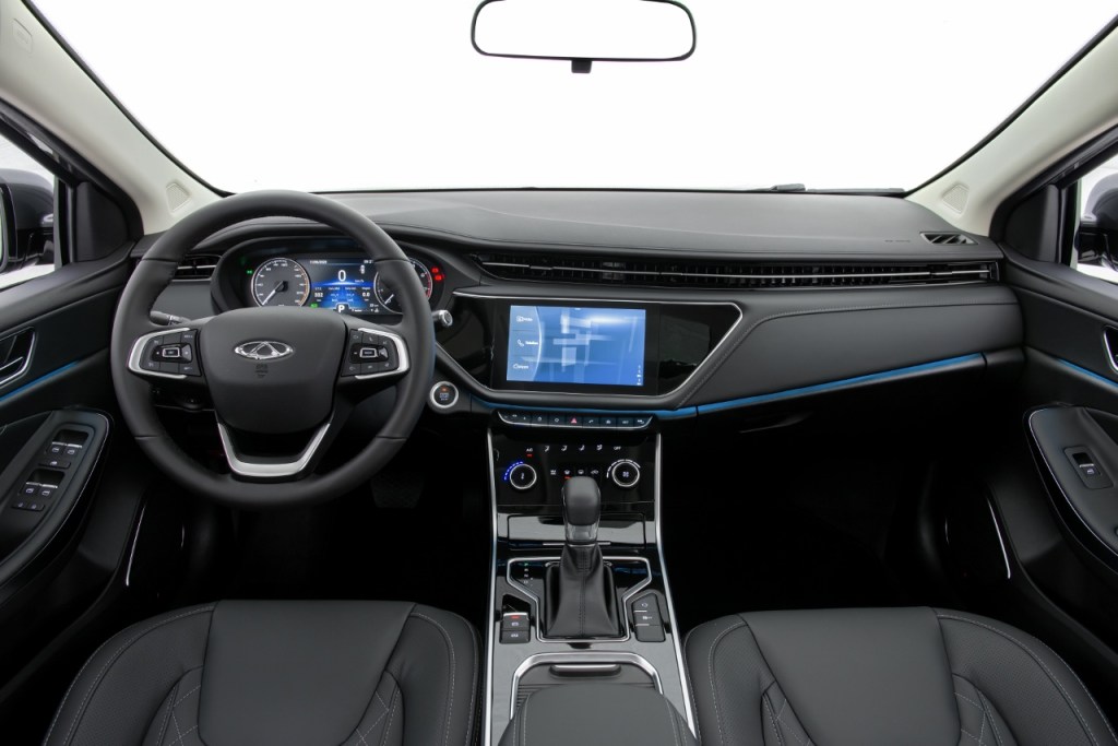 Bancos, volante e detalhes dos painéis dianteiro e de portas são revestidos com material premium que, juntamente com as luzes ambientes presentes nestes painéis, dão um acabamento inovador e sofisticado ao interior do Arrizo 6.