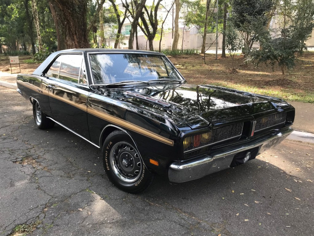 Afivele os cintos. Hoje vamos conhecer os detalhes do Dodge Charger R/T 1975 conhecido como “triple black” por conta da combinação da cor da carroceria, interior e vinil na cor preta. Sob o capô o 318 V8 recebeu carburador de corpo quádruplo da Holley e abafadores esportivos.