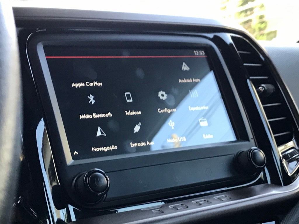 Na parte interna vale salientar a luz de caçamba e os sensores de estacionamento, crepuscular e de chuva. A central multimídia está bem posicionada e traz aplicativos como Android Auto e Apple Carplay, porém poderia ser um pouco maior nessa versão topo de linha. Ar-condicionado dual zone e um conjunto de tomada 12V e USB para os passageiros completam o pacote.