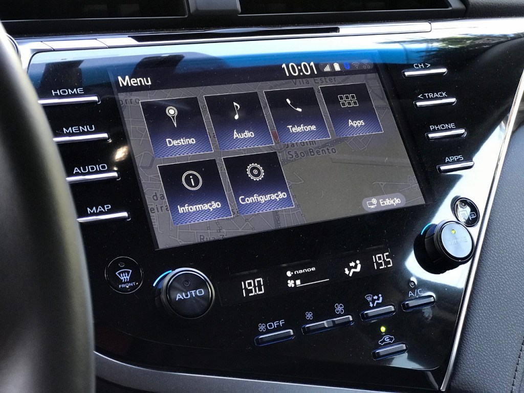 Esse é um quesito onde o sedã japonês perde pontos. O multimídia traz tela central ampla de 8 polegadas, o painel é vistoso e conta com a opção de pareamento de telefone através de mirror link, além de sintonizar canais de TV, DVD e com GPS integrado. Porém a conexão Apple CarPlay e Android Auto faz muita falta e está presente em veículos com preço inferior.